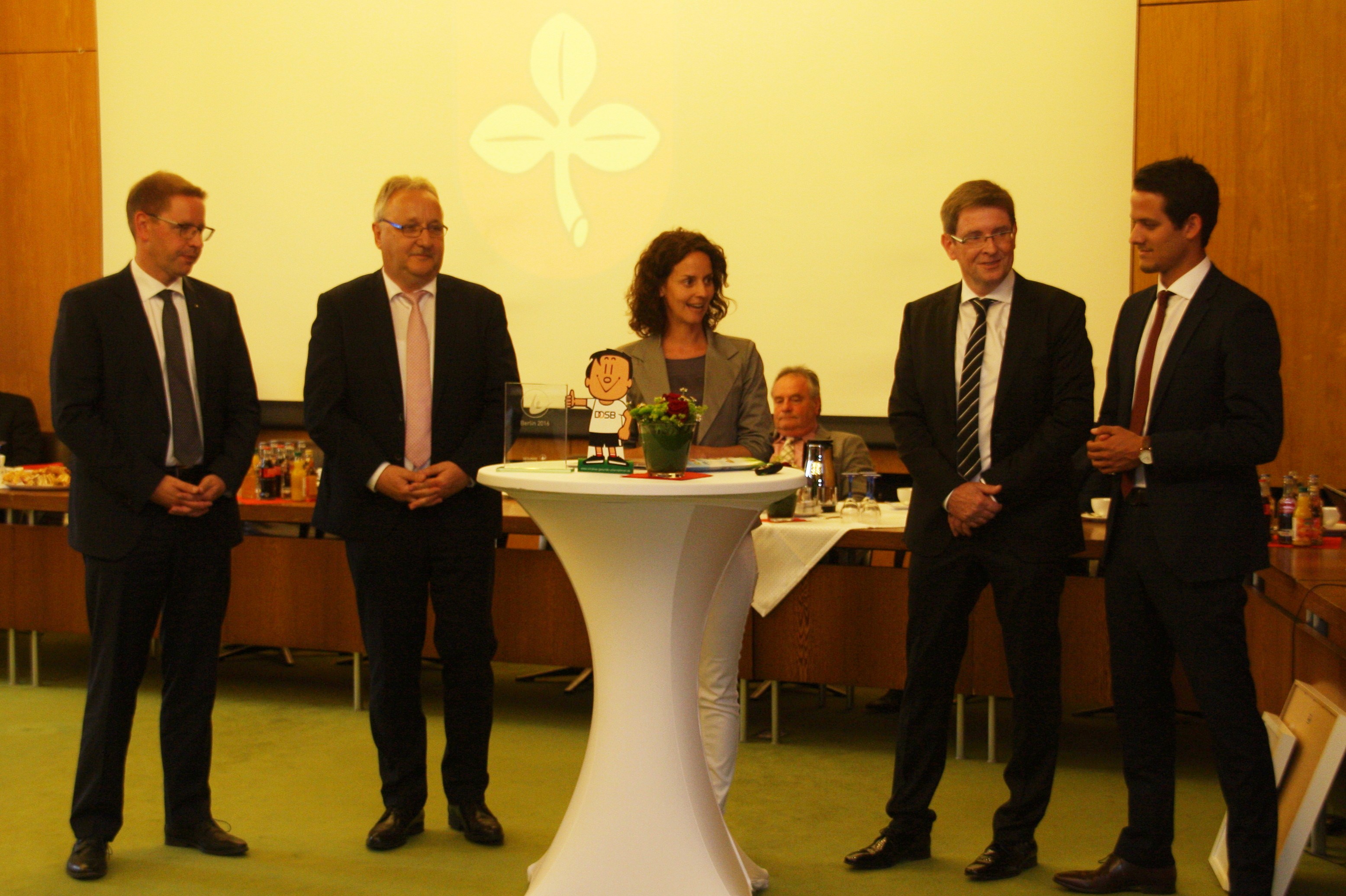 Im Rahmen einer feierlichen Stunde im Rathaus der Stadt Salzkotten mit Vertretern aus Politik, Wirtschaft und Sport, überreichten die beiden Inhaber des Instituts Katja Weigand und Steffen Klink in Verbindung mit den Repräsentanten der Initiative Hans-Joachim Meier und Manfred Faulhaber für NRW und Niedersachsen, das Auszeichnungssiegel im Beisein von Bürgermeister Ulrich Berger, an die Geschäftsleitung von Müller Elektronik.